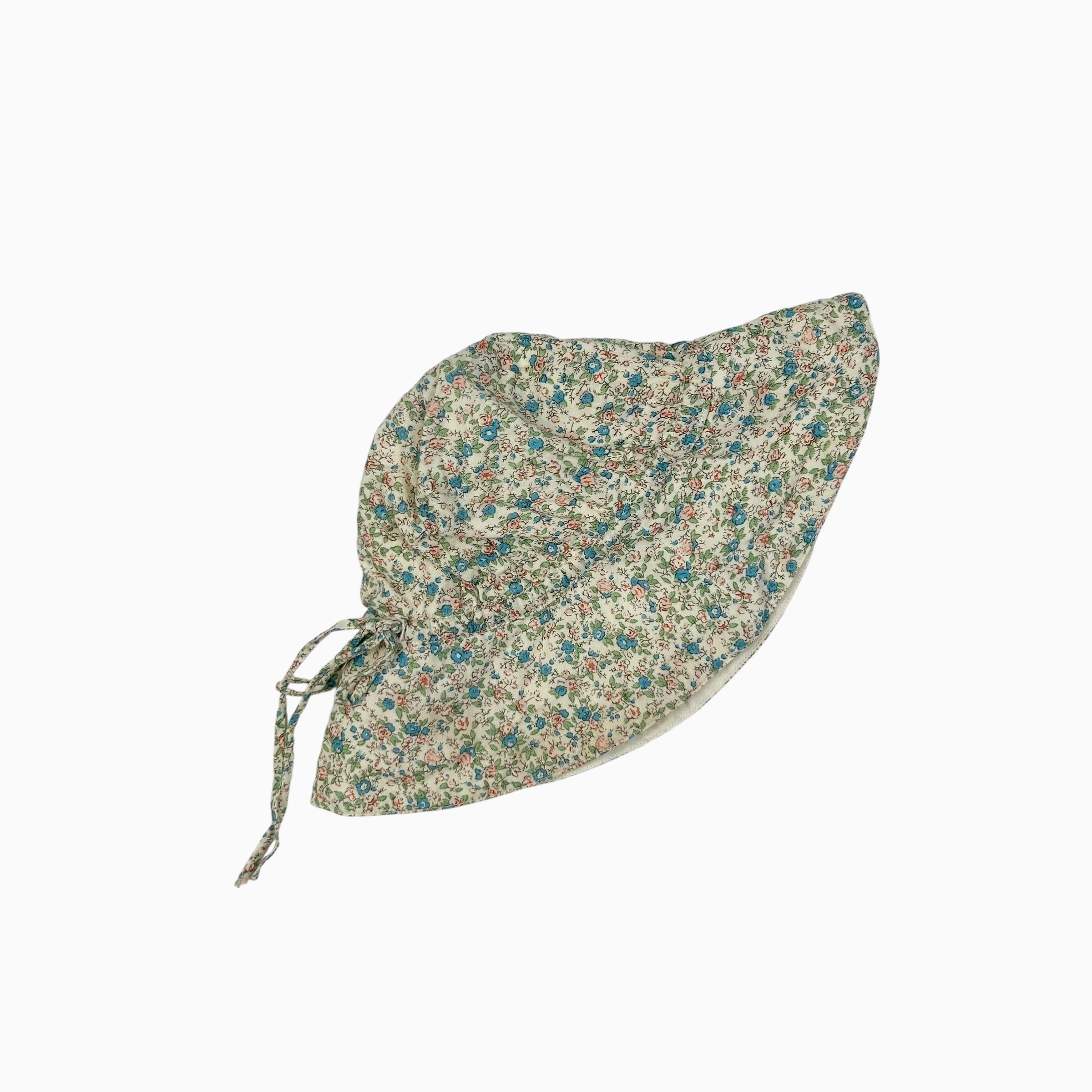 Chapeau soleil vanille fleuri en mousseline 1Y