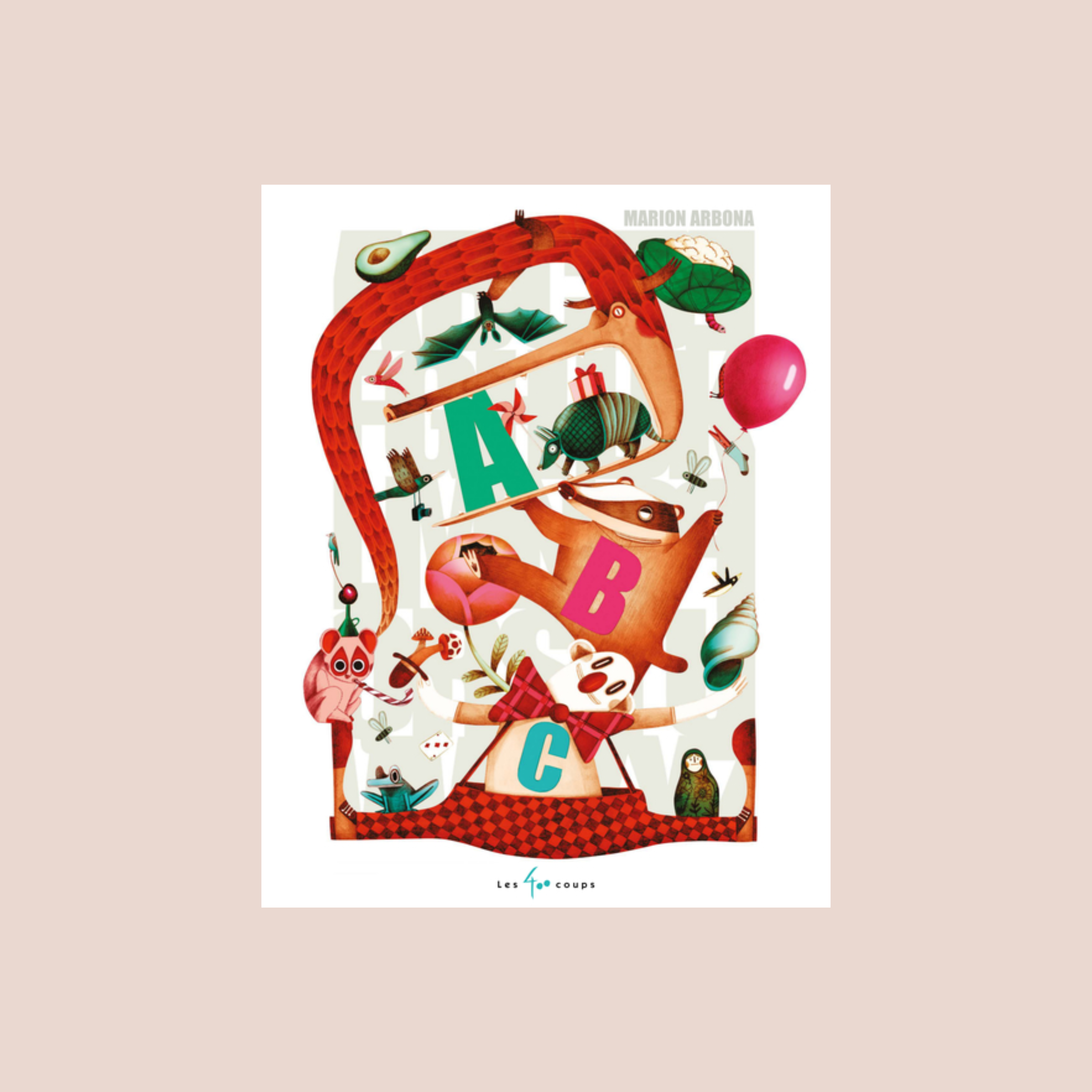 Vous aurez besoin d’yeux bien affûtés pour vous amuser avec cet abécédaire surprenant. Élaboré selon le principe du « cherche et trouve », ABC propose une foule de mots hétéroclites pour chaque lettre et vous invite à trouver leur représentation dans une illustration des plus déjantées. En effet, chaque illustration présente une lettre géante garnie à ras bord d’éléments fantaisistes et captivants. Avec cet album, on s’amuse à découvrir le son et le nom des lettres, à apprendre de nouveaux mots et à inventer des histoires farfelues!