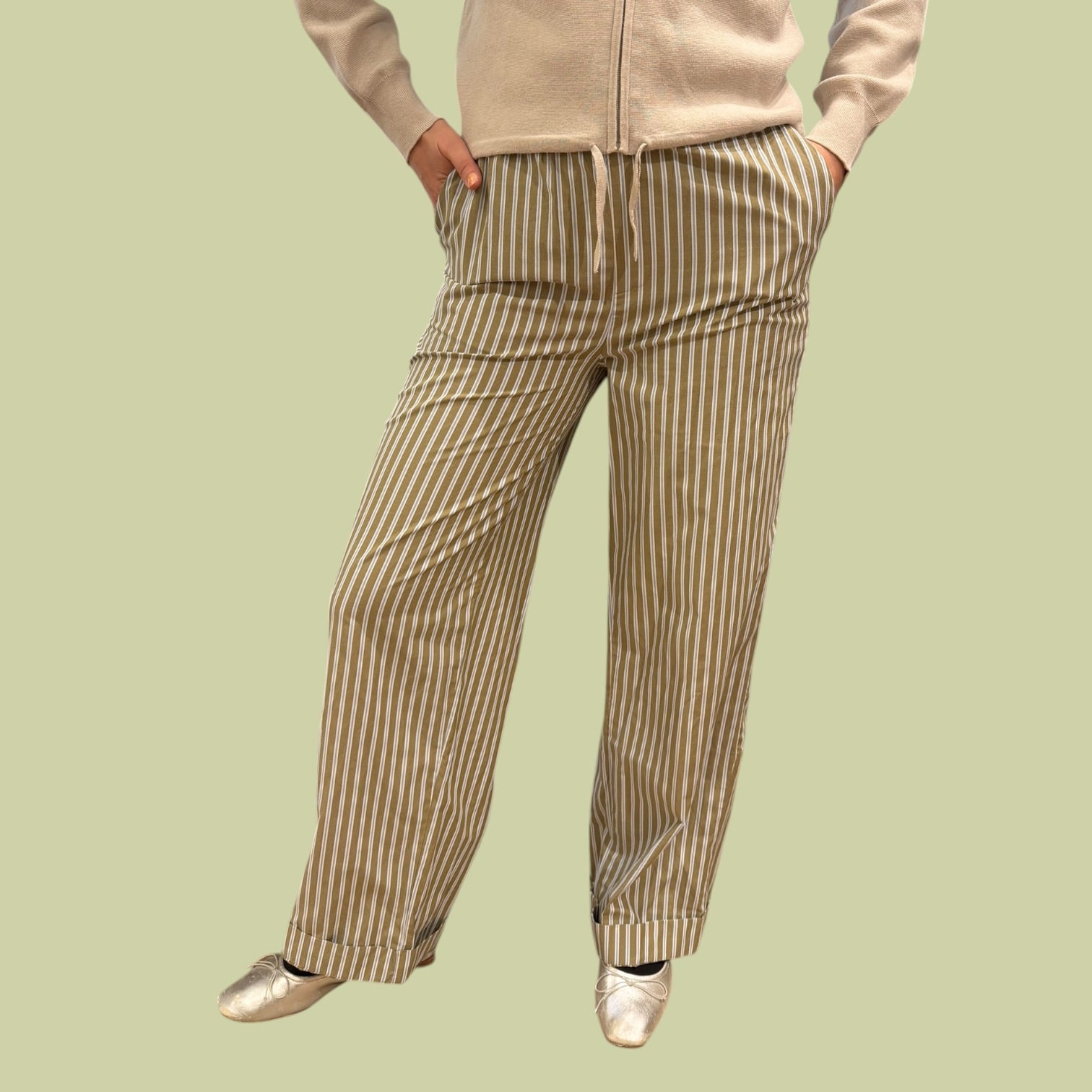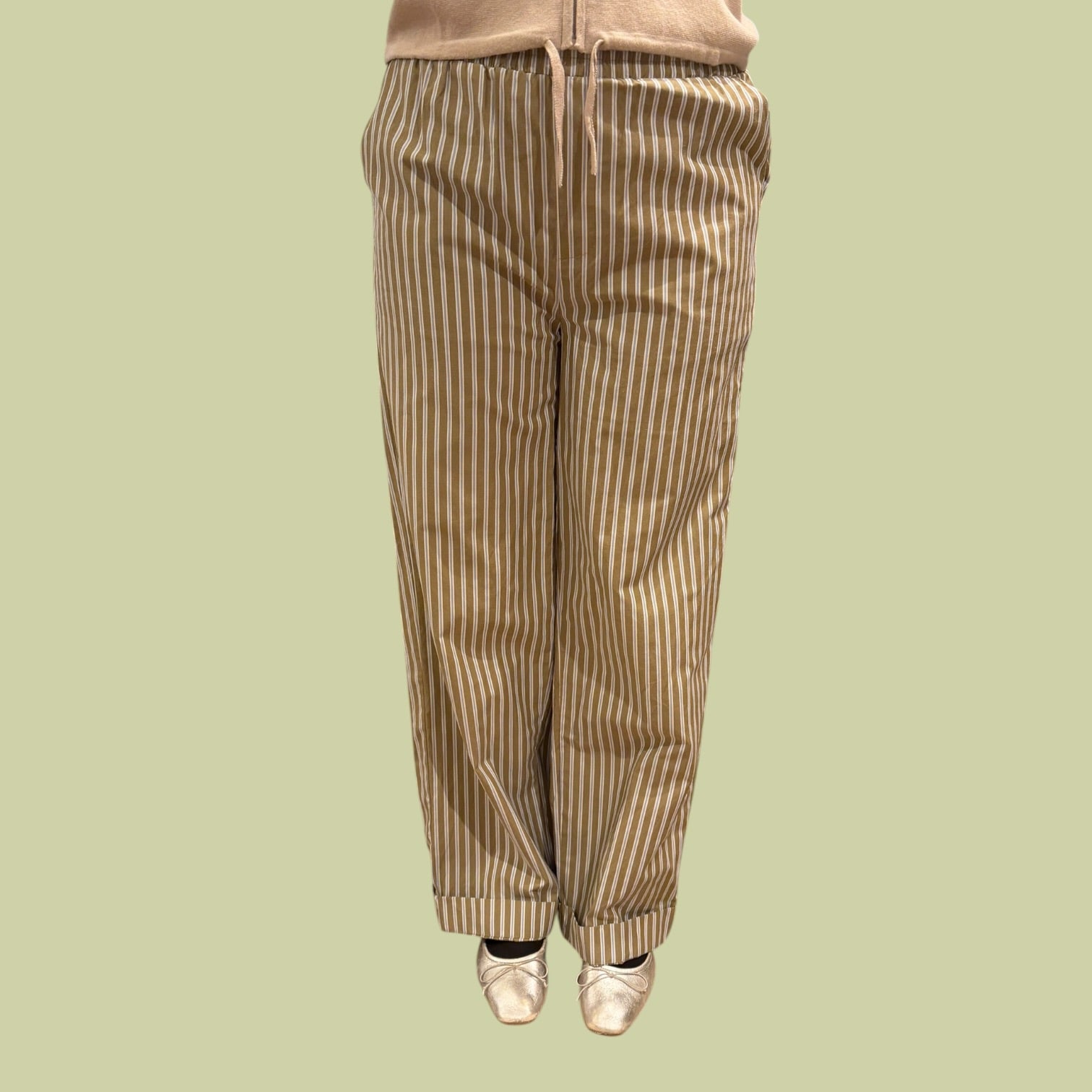 Pantalon taupe à rayures bleu ciel en coton et poly pour femmes M