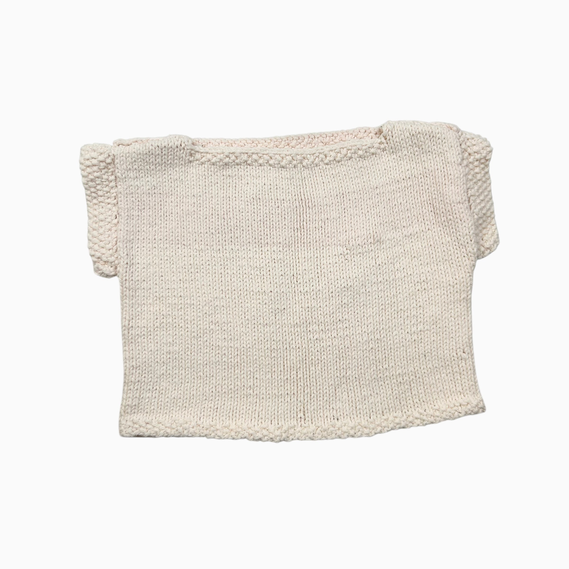 Pull rose pâle en tricot de coton fait main 2-3Y