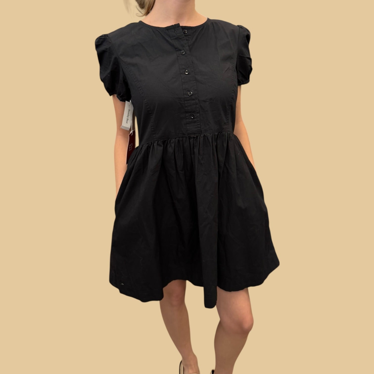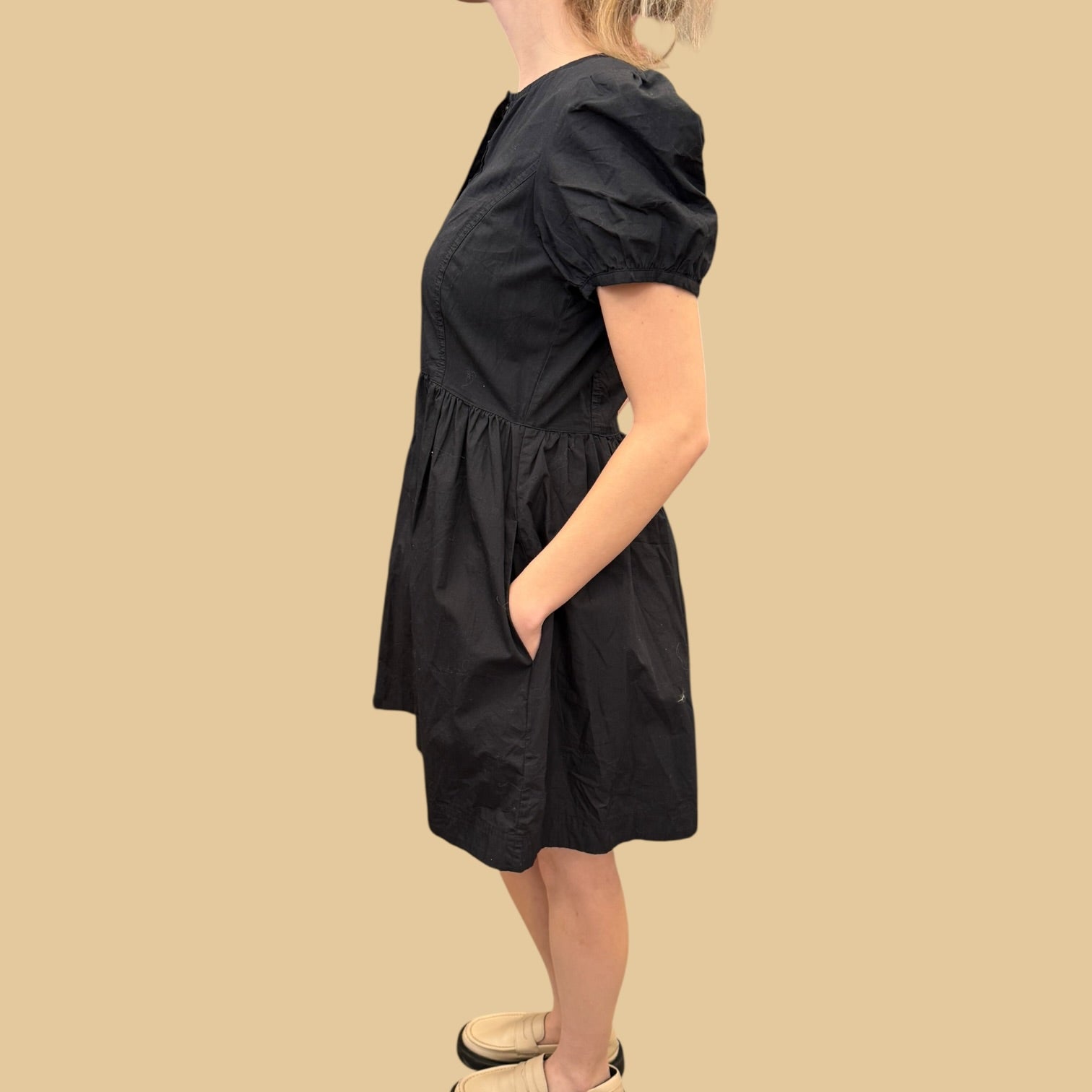Robe noire en coton avec poches pour femmes S