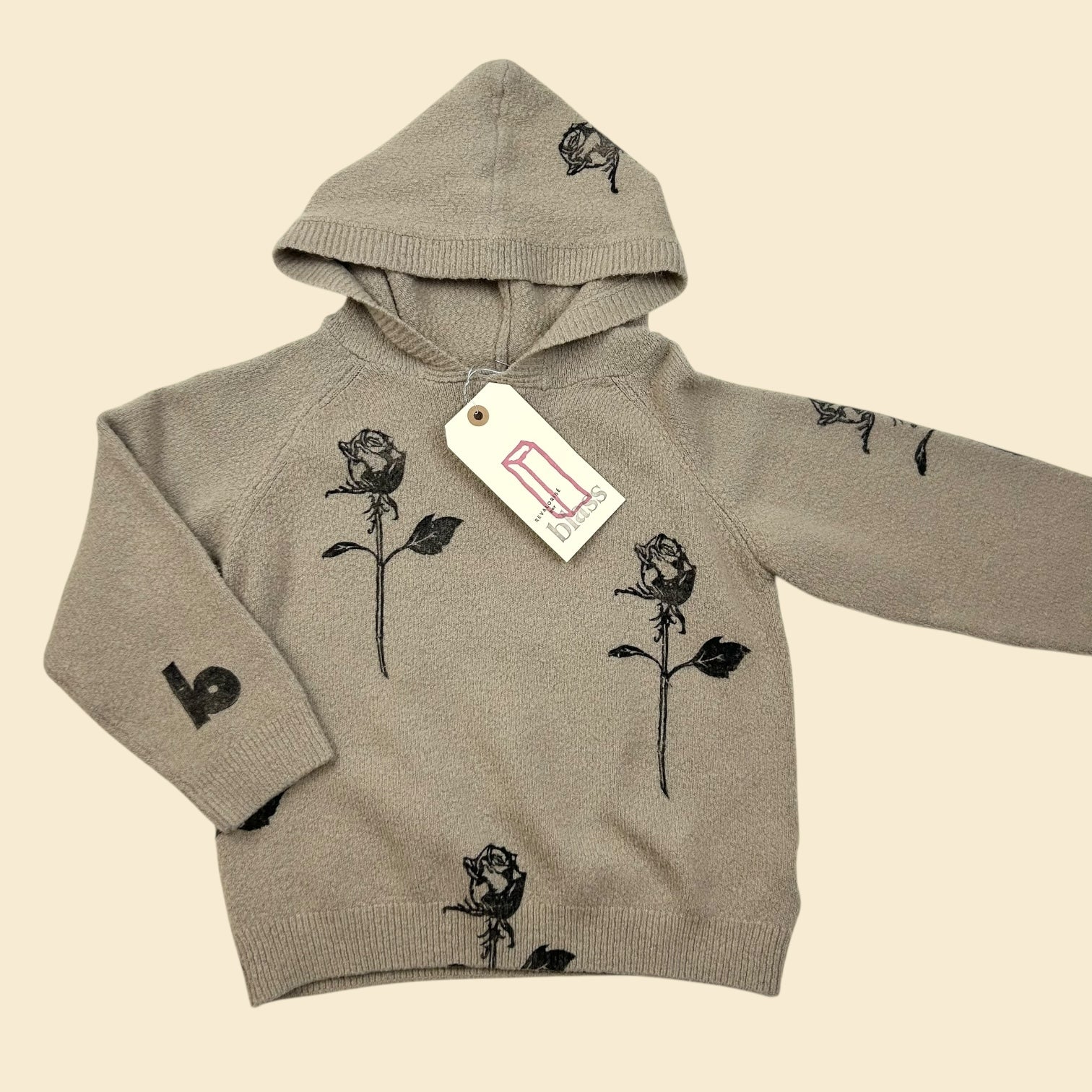 Tricot hoodie beige roses 7Y